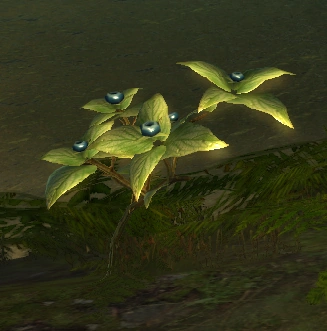 El fruto de la unibaya es redondo y azulado, del que parten cuatro pequeñas hojas en cada dirección. Los arbustos con unibayas tienen hojas anchas de color verde claro. Se suelen encontrar cerca de las fuentes de agua, como los lagos, y en los alrededores de los bosques.