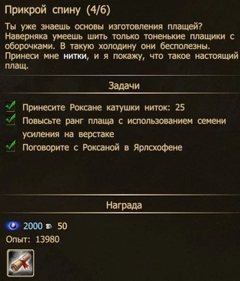 Внимание! Квест выдаётся автоматически, как только герой найдёт нитки.