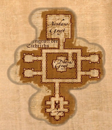 Diese Krypta befindet sich unterhalb Tallon. Im Laufe der Queste Die Plünderer muss man hier hinein und zwei Personen befreien, die versehentlich den Schlaf der Toten unterbrochen haben und man daher der Leidtragende ist. Man startet im südlichsten Bereich der Krypta. Der Boss, ein untoter Nekromant, befindet sich im nördlichsten Raum. Die Skelette, die dem Nekromanten beistehen, verschwinden, sobald der Nekromant besiegt ist (womit man auch ihre 25 AP verliert, weshalb man auch eine andere Taktik wählen kann). Mit dem Tod des Nekromanten ist die Aufgabe "Überzeugt den Kaufmann" der Queste Die Plünderer abgeschlossen, ihr findet euch mit Mutter Süßen und Kaufmann Eichrich auf dem Friedhof wieder. Der Gang in die Krypta steht euch weiterhin offen, am Schauplatz des letzten Kampfes findet Ihr in den Fässern und Särgen einige Tränke, der Nekromant trägt einen Seelensplitter und einen alten Brief mit sich. Wenn man sich entscheidet, den Raum nach dem Kampf noch zu durchsuchen, so sind in den beiden Särgen jeweils 2 Heil- & Zaubertränke.